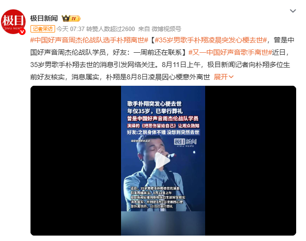近日,一则让人痛心的消息登上了热搜:前《中国好声音》学员朴翔因突发心梗不幸离世,年仅35岁。他的人生,就这样停留在这个最灿烂的年纪。