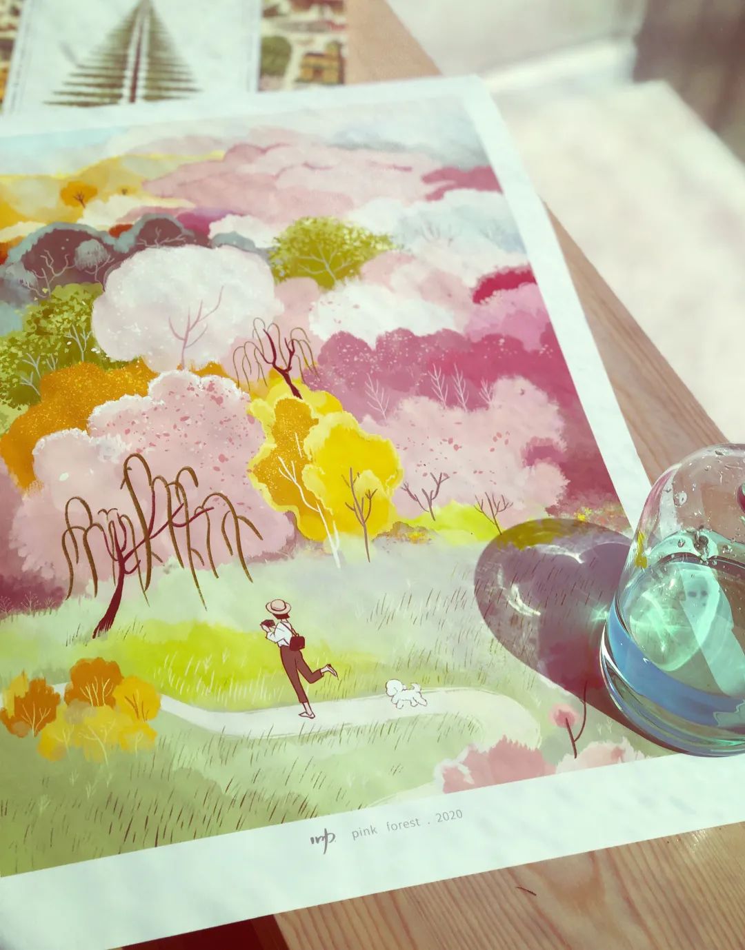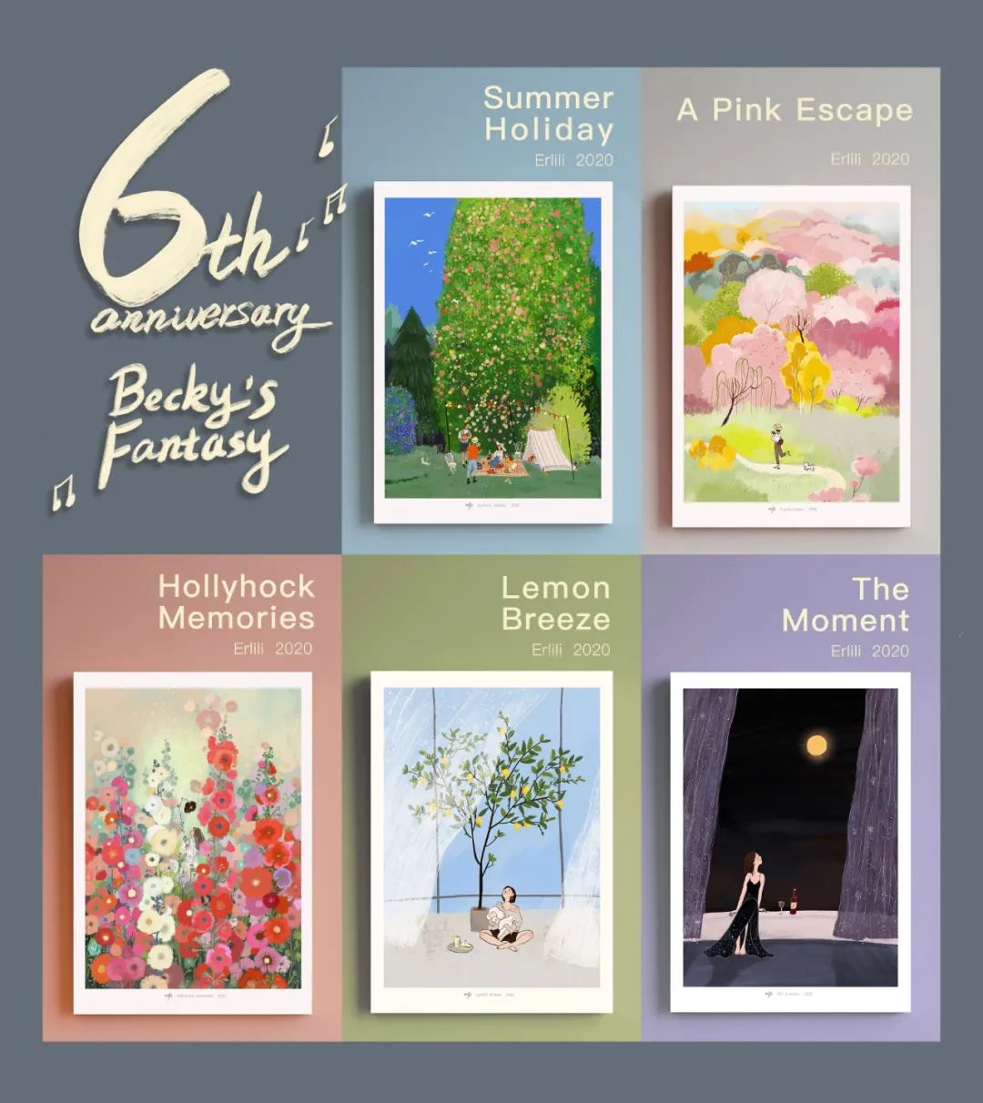 终于在六周年庆,这个愿望实现了。她和卡卡选了5幅今年新作,复制成微喷装饰画,这两天刚刚在好物馆上线。