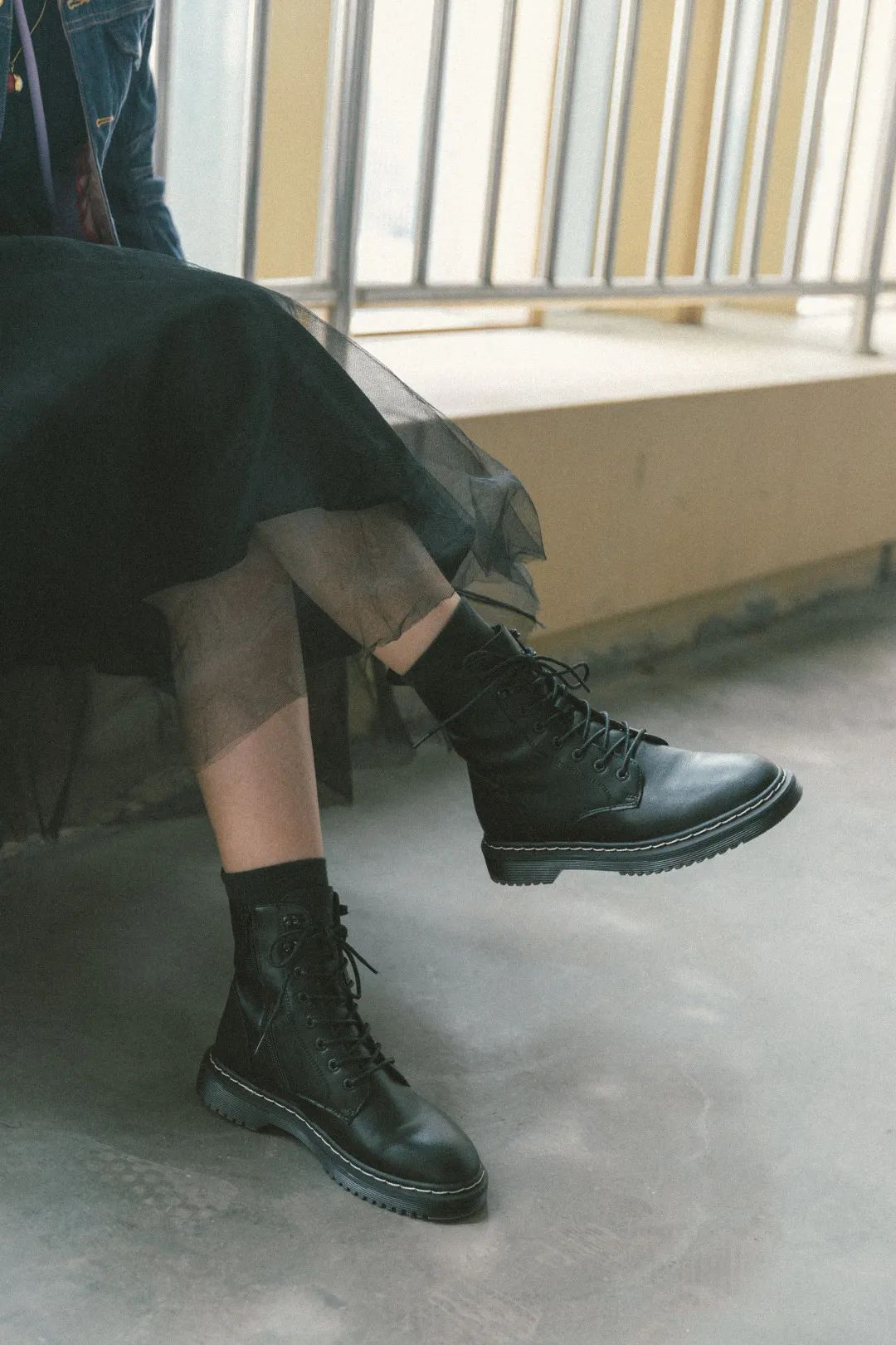 高度也正好护住脚踝,但不会过长裁腿,没脚踝的人也很适合用马丁靴藏拙。腿腿1米多的巨人腿穿上更是又秀气又帅气~