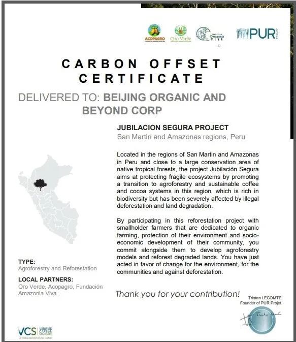 依托全球性可持续项目PUR Project[15],正谷与巧克力生产伙伴估算下一年需要抵消的温室气体排放量。PUR Project联合当地农户一起提前种植足够可以吸收对应排放量的树木。然后再根据实际情况从PUR Projet购买相应数量的CO2证书。该项目中的每位农户和每棵树木都在种植登记册中注册。此外,种植的树木通过GPS注册,因此可以使用代码通过Google Earth定位每棵种植的树木。所有未成活或已经死掉的树苗将会被替换。