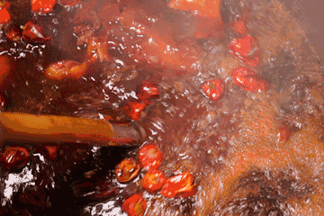 ③这还没完,还得煮高汤、炒糖色、炒酱,太复杂了。