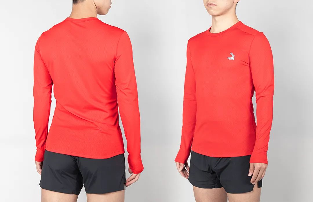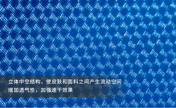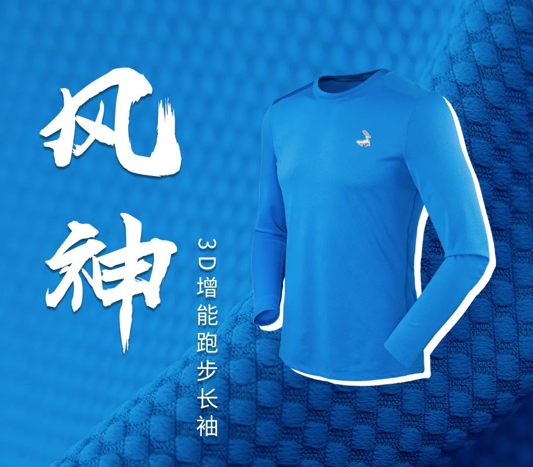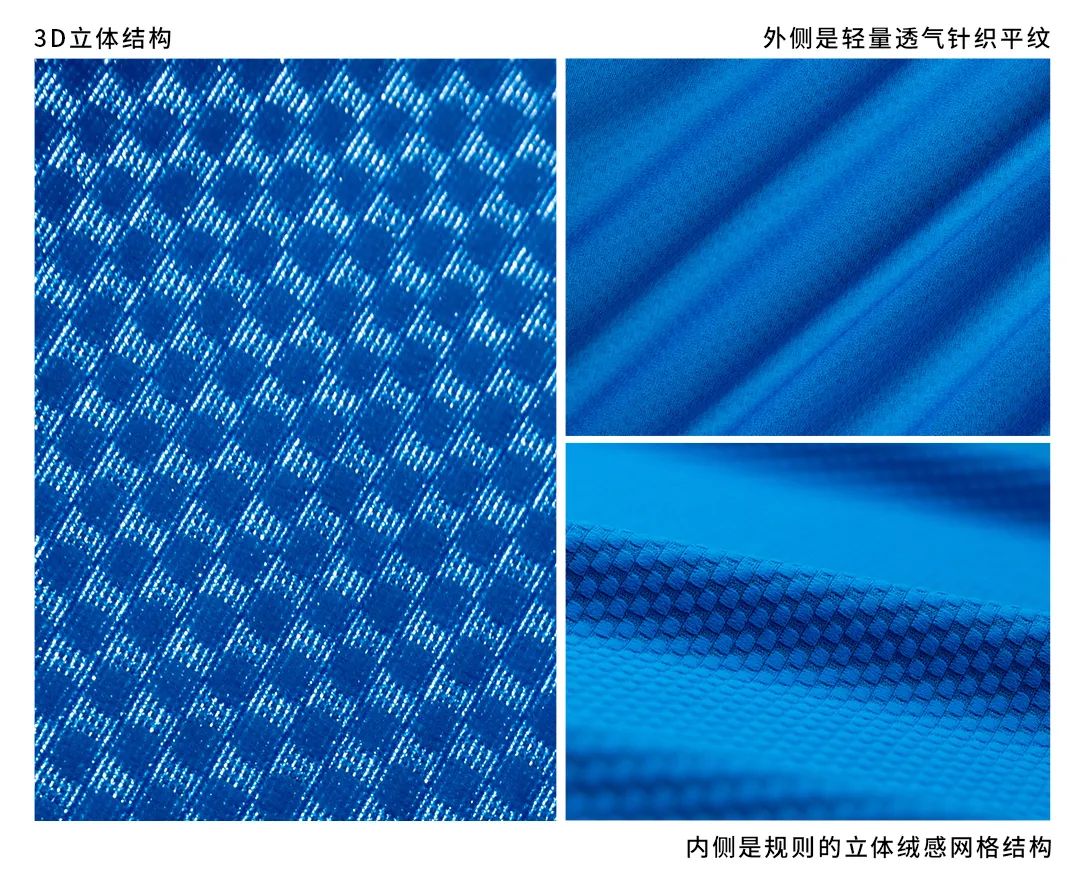 风神系列最大的亮点是对于面料的突破,采用特殊的织造技术,实现在织物上的自然开孔(而非粗暴的激光冲孔),从而增加面料整体的透气性,加速体表汗液的挥发速度。