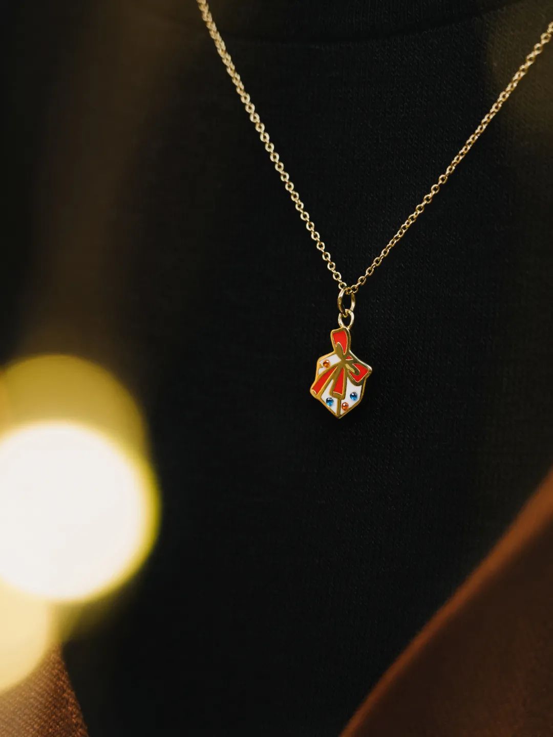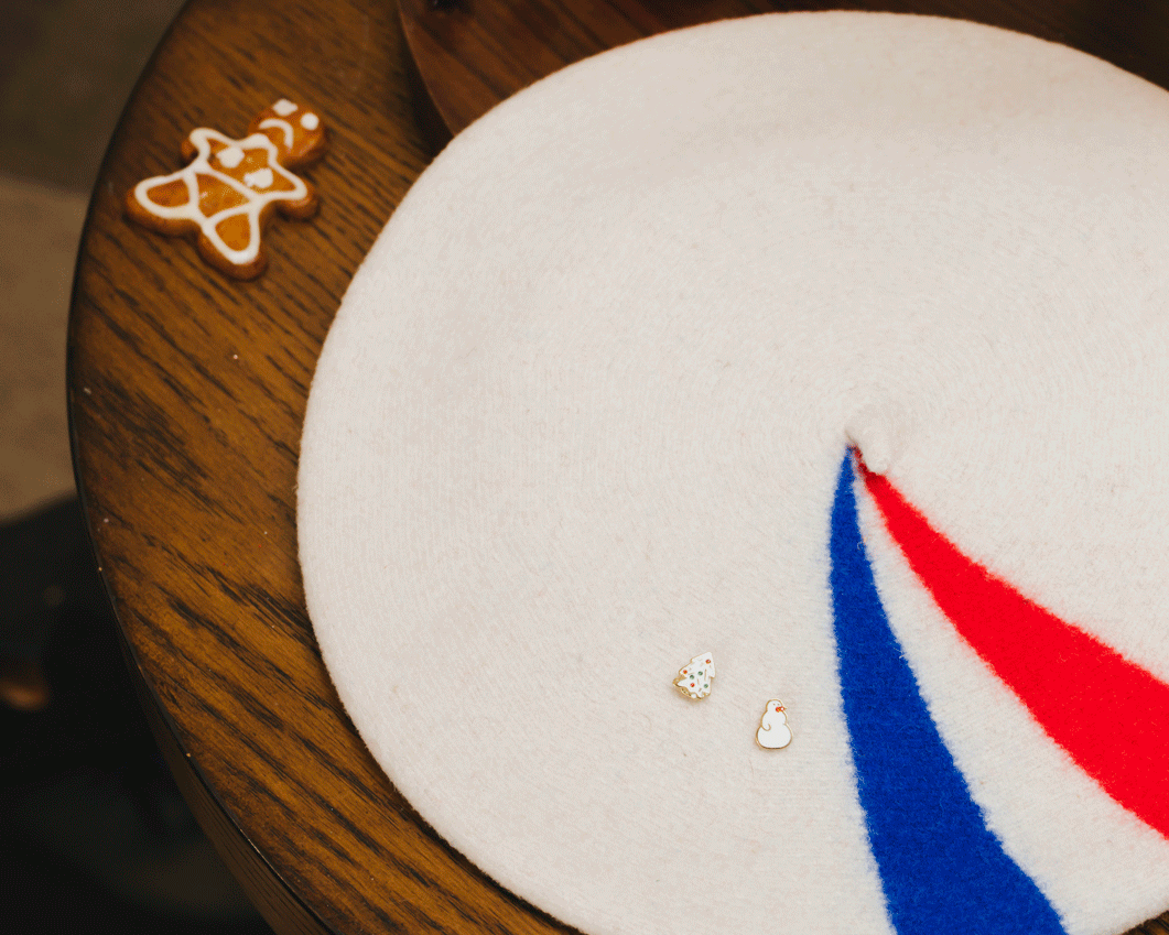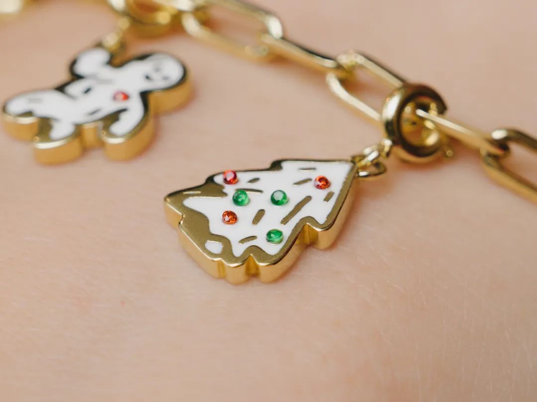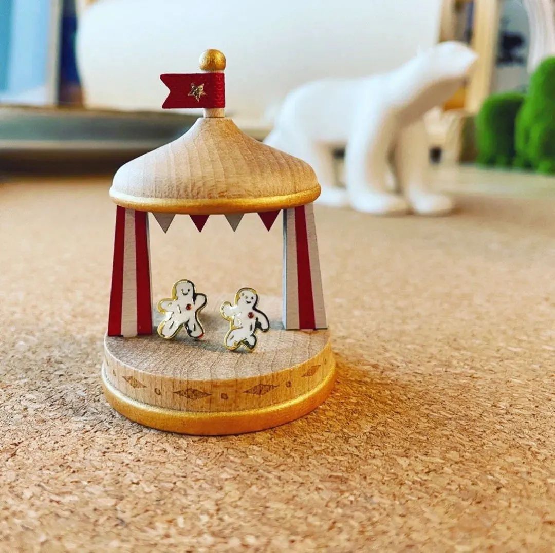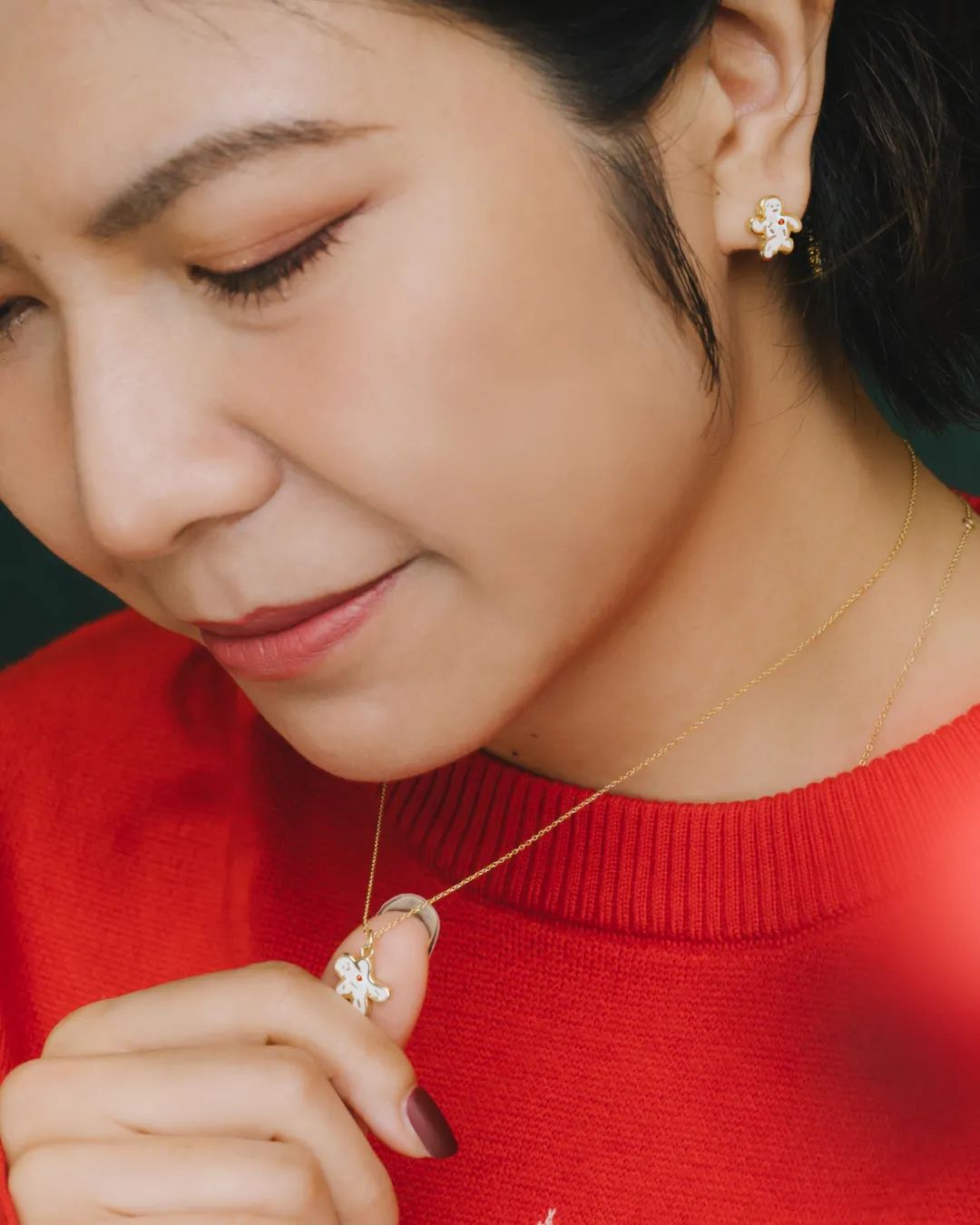 第一个推荐的当然是首饰,灵感是她的圣诞小漫画,叫“姜饼人冒险记”:一只刚被烤好的姜饼人悄悄离家出走、跑出去闯江湖了~
