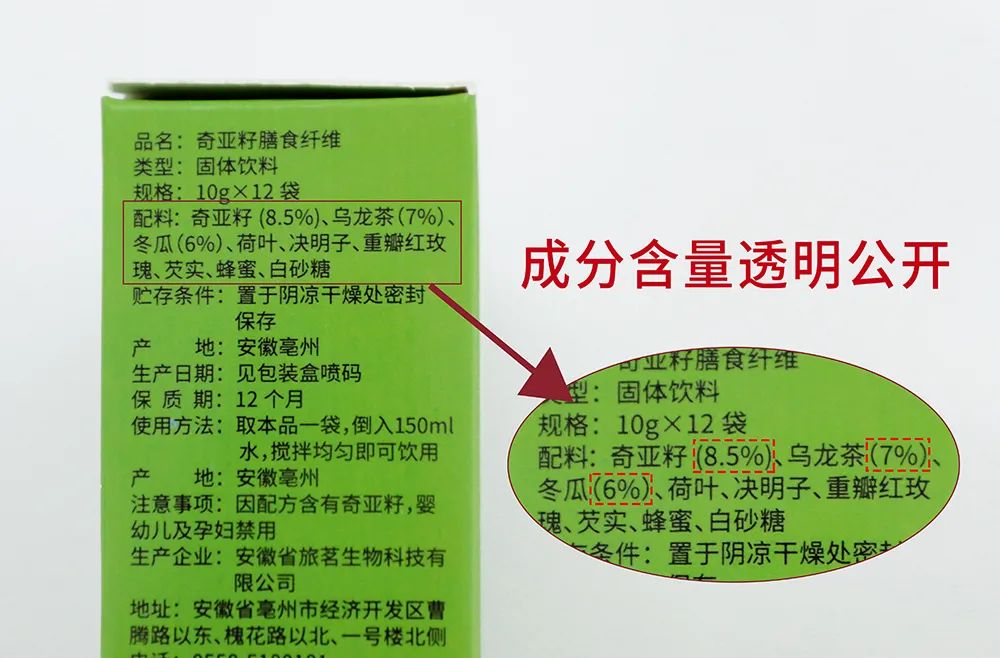 市面上奇亚籽纤维产品,甚至大部分减肥产品都不会公开成分的具体含量,而这款奇亚籽膳食纤维做到了。