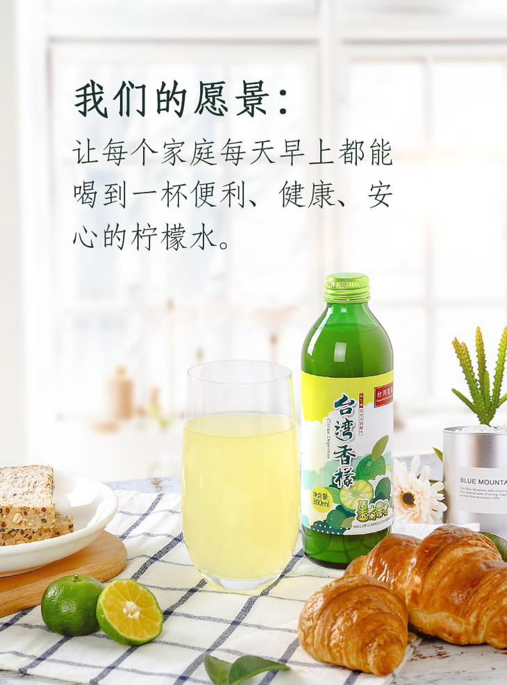 2.切记不可直接&空腹饮用,以1: 30的比例进行冲泡,一瓶盖的香檬原液,搭配300ml的水即可。