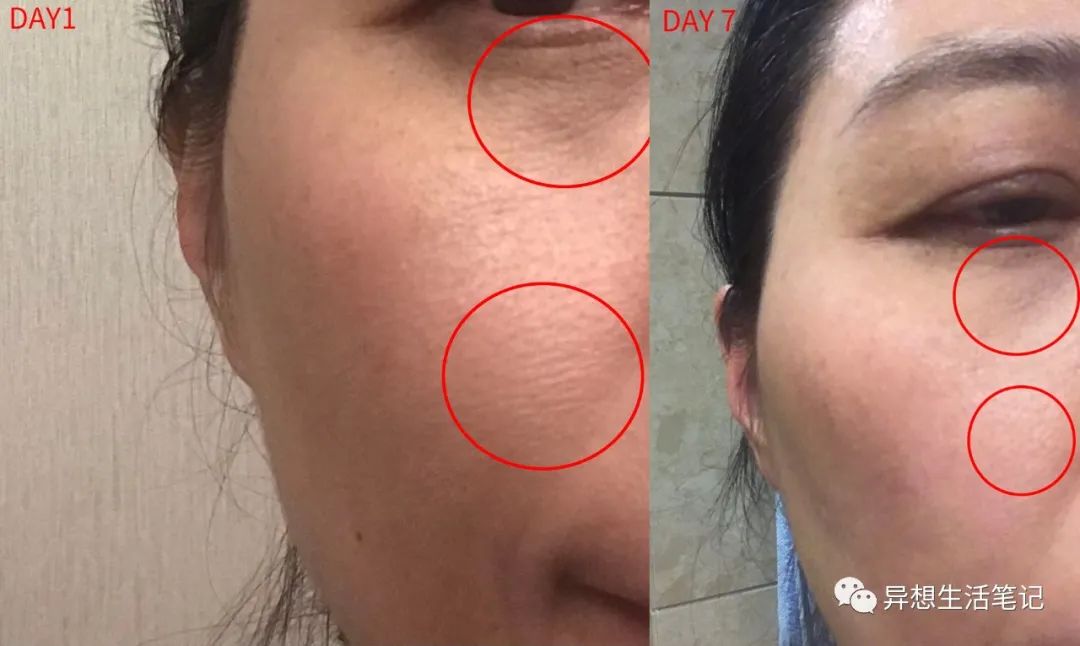 我的脸部算是没什么纹路,也比较紧实饱满。我打卡了4天,竟然还挺惊喜!嘴角的木偶纹和面部的法令纹就有变淡一点点。