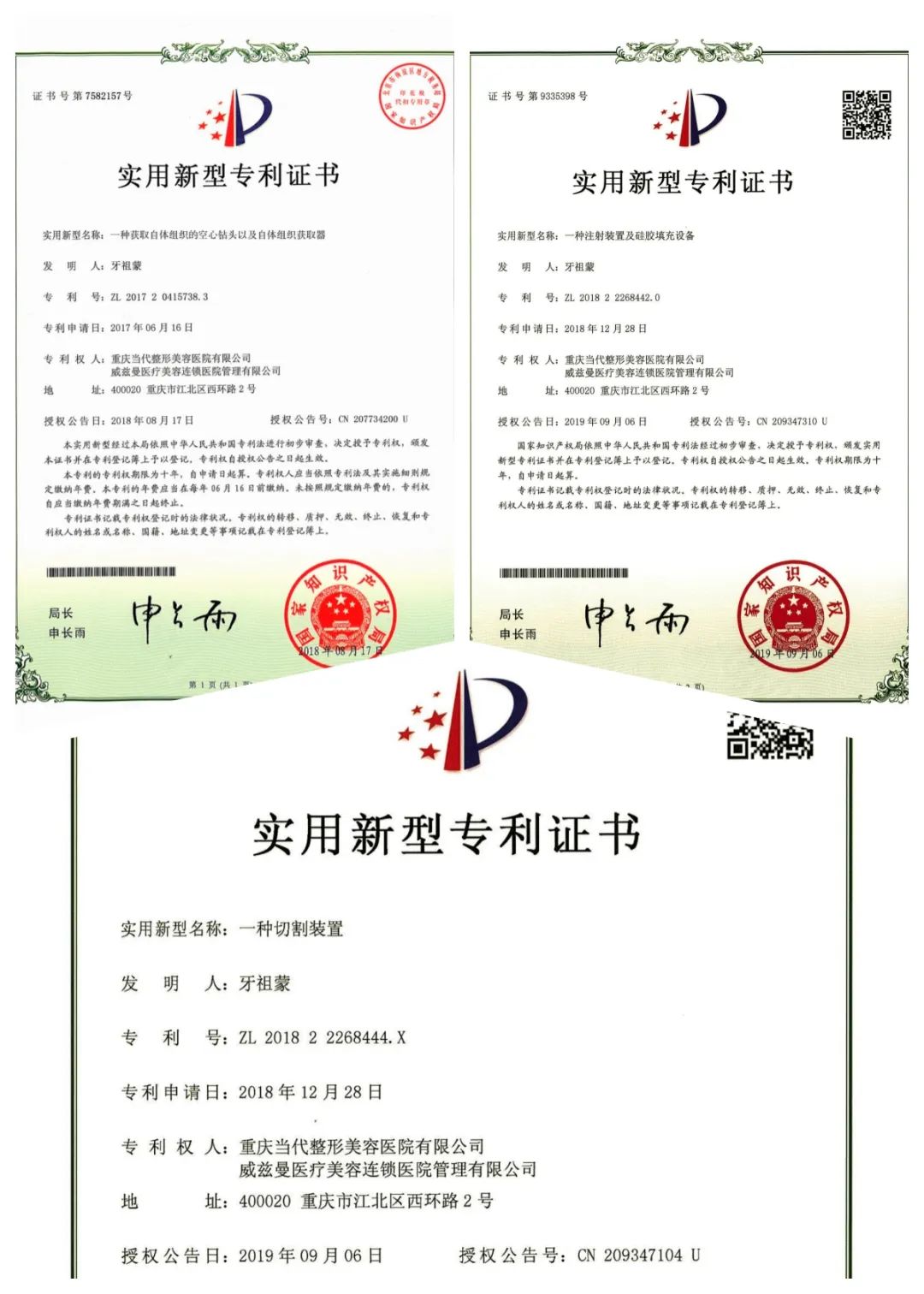 他先后多次在韩国、日本、法国、新加坡、美国等进行访问、进修、和学术交流,并把学习交流成果创新应用于临床实践,先后发明3项专利(ZL 2017 2 0415738.3、ZL 2018 2 2268444.X、ZL 2018 2 2268442.0),不断助推整形美容技术的提升。