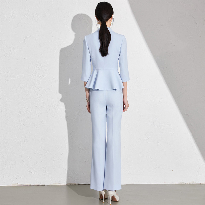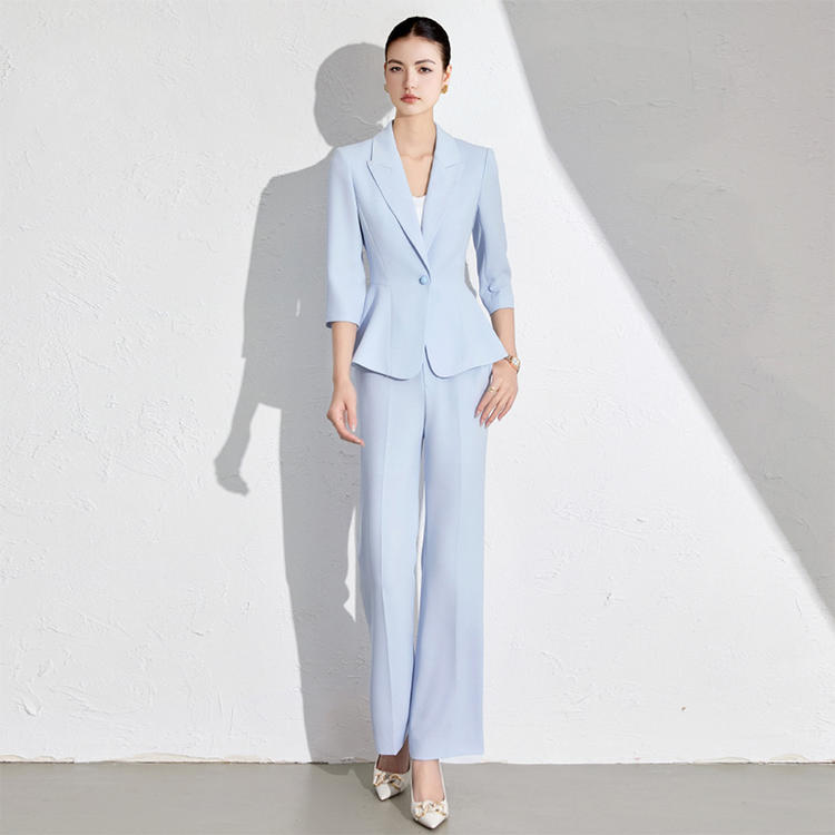 利落西装领,自带干练气场,却因柔和浅蓝格纹,少了刻板,多了份轻盈。七分袖长度,露出纤细小臂,春夏穿清爽,秋冬搭内搭也不臃肿,适配各种办公场景~