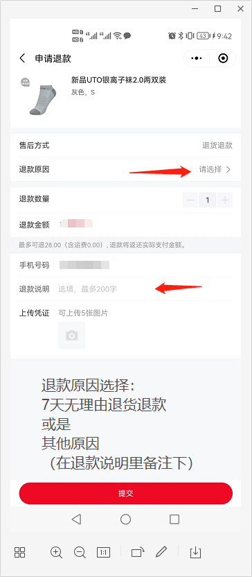 注意:提交售后订单后,后台会审核有退货地址以及注意事项,退回后,请及时回传快递单号,否则影响退款进度。(针对自行寄出快递)