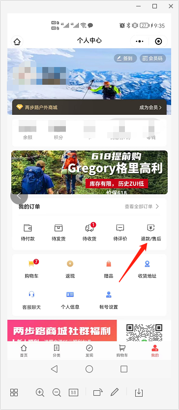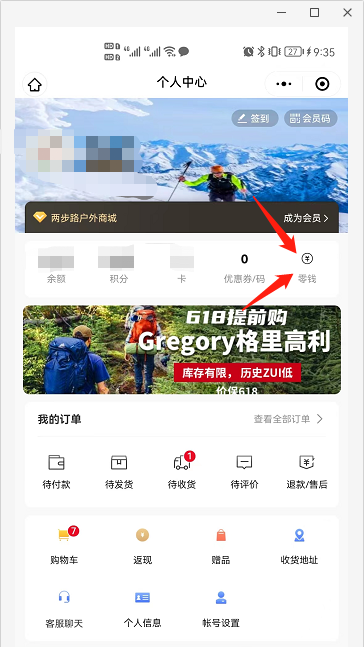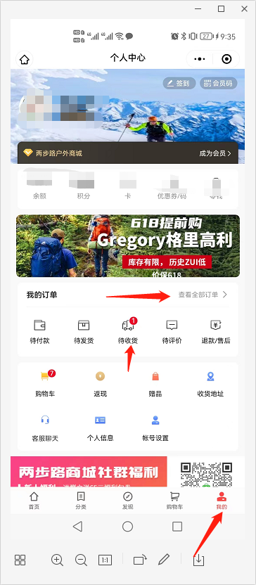 如果是从两步路app进入,先选择【商城】,再点击右下角【我的】选项,进入下方界面~!