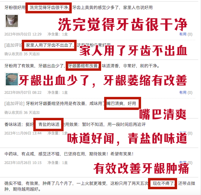 因为中药牙粉效果好,之前很多用过的朋友,都在后台留言反馈、求复购的: