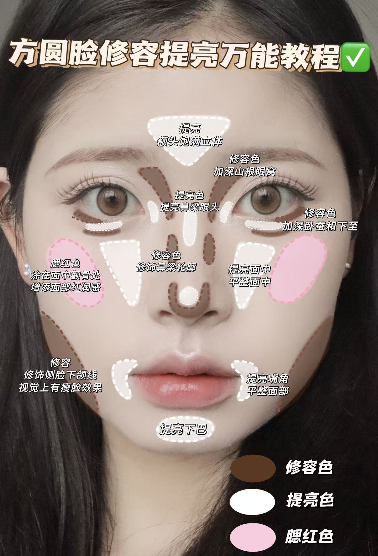 有手就会!方圆脸修容提亮万能教程✅