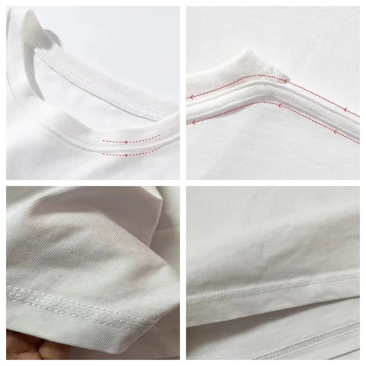 领口、肩膀还加了压条织带加固,袖口、下摆都是三本针走线,多洗几次也不会变形,超放心~