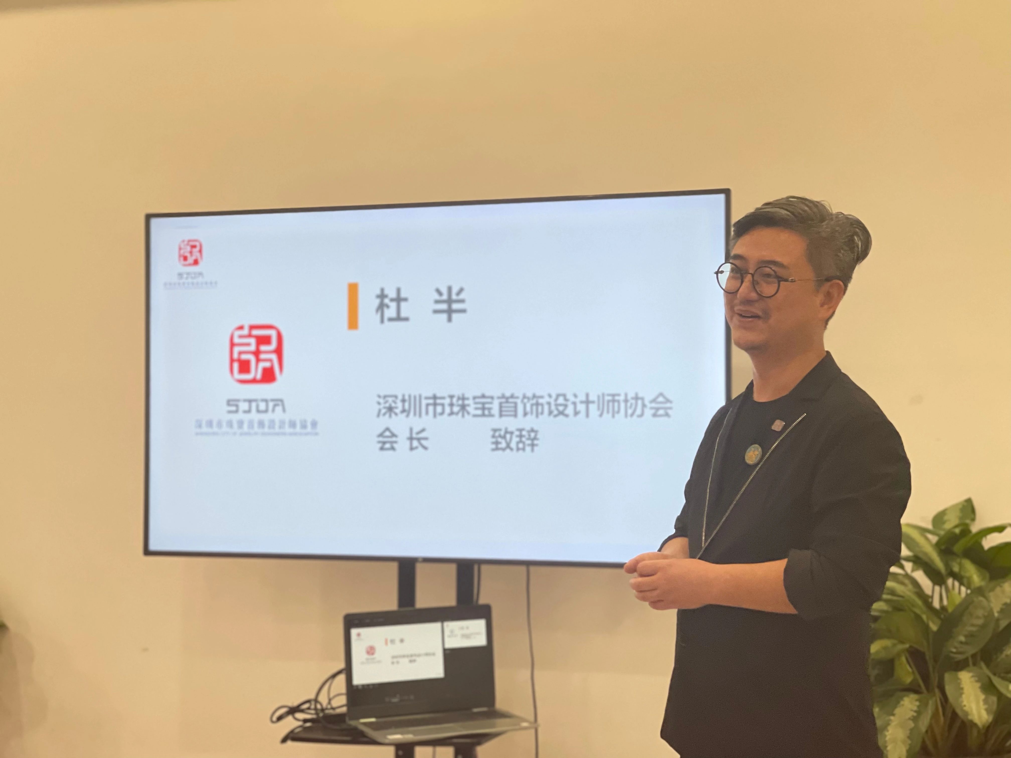 深圳市珠宝首饰设计师协会杜半会长致辞。