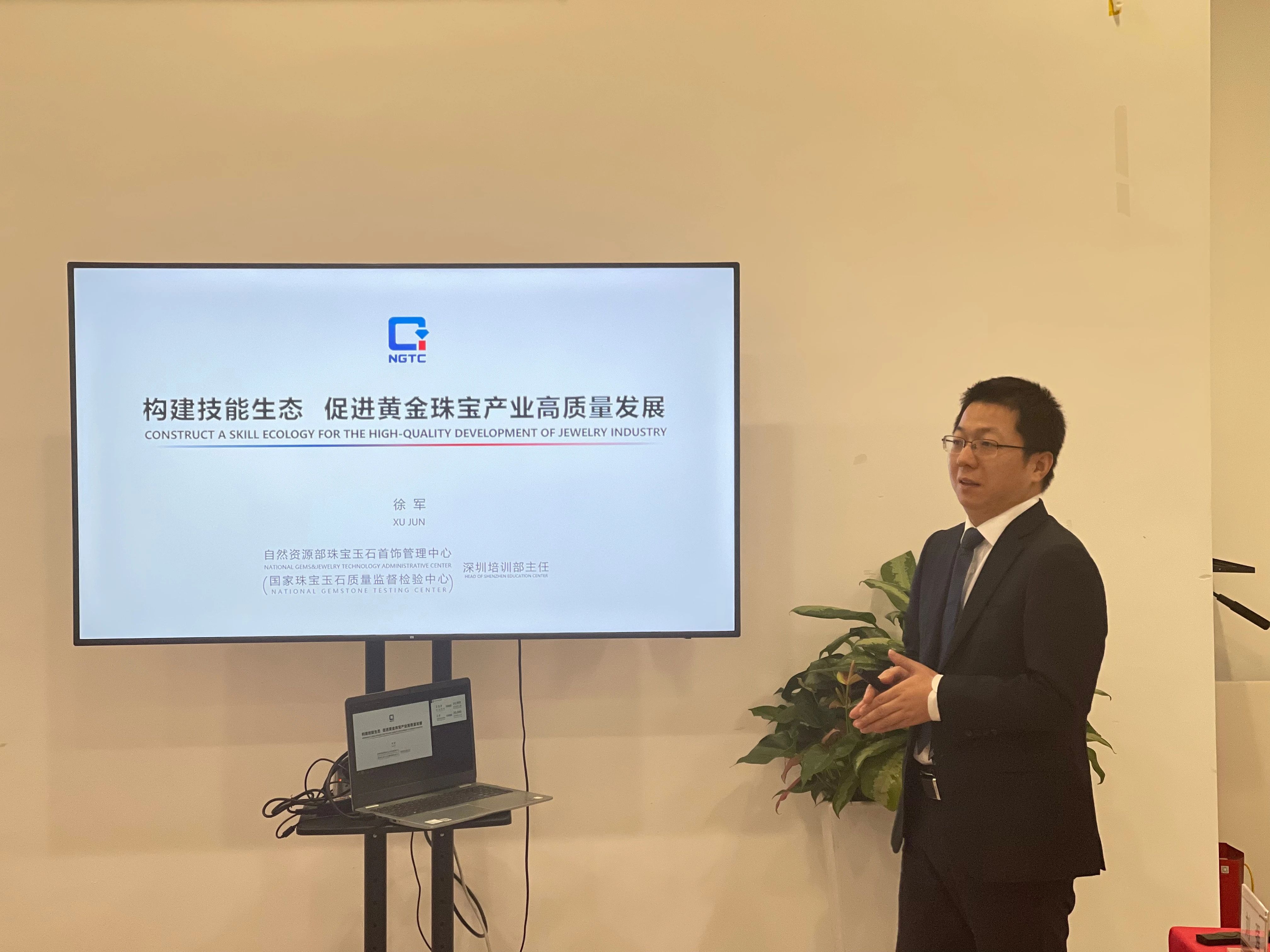 活动现场徐军校长为深圳市珠宝首饰设计师协会进行了珠宝首饰职业技能等级认定考点的授牌。
