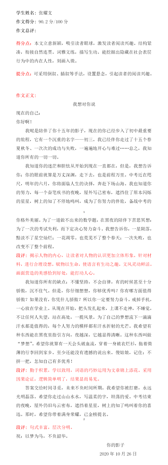 本篇习作内容紧贴自己的生活实际,脉络分明,情感充沛,运用多种描写手法,把自己初中三年的奋斗之艰,意志之坚付诸笔端,读来感人至深。请牢记:“生活不负有心人”,愿你不负韶华,砥砺前行!