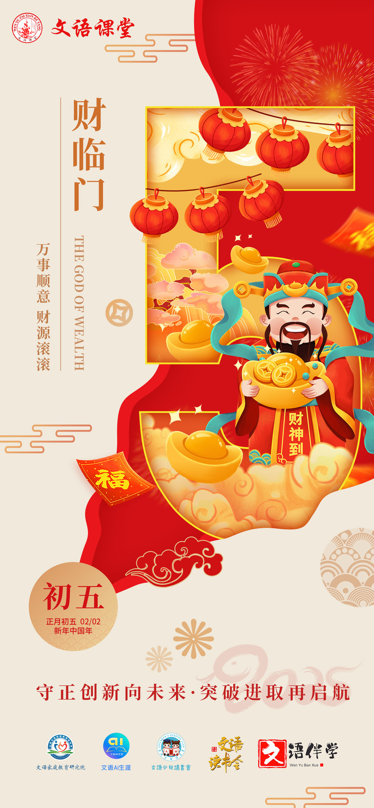 财神送宝鸿运罩,富贵绵延枝叶茂 。