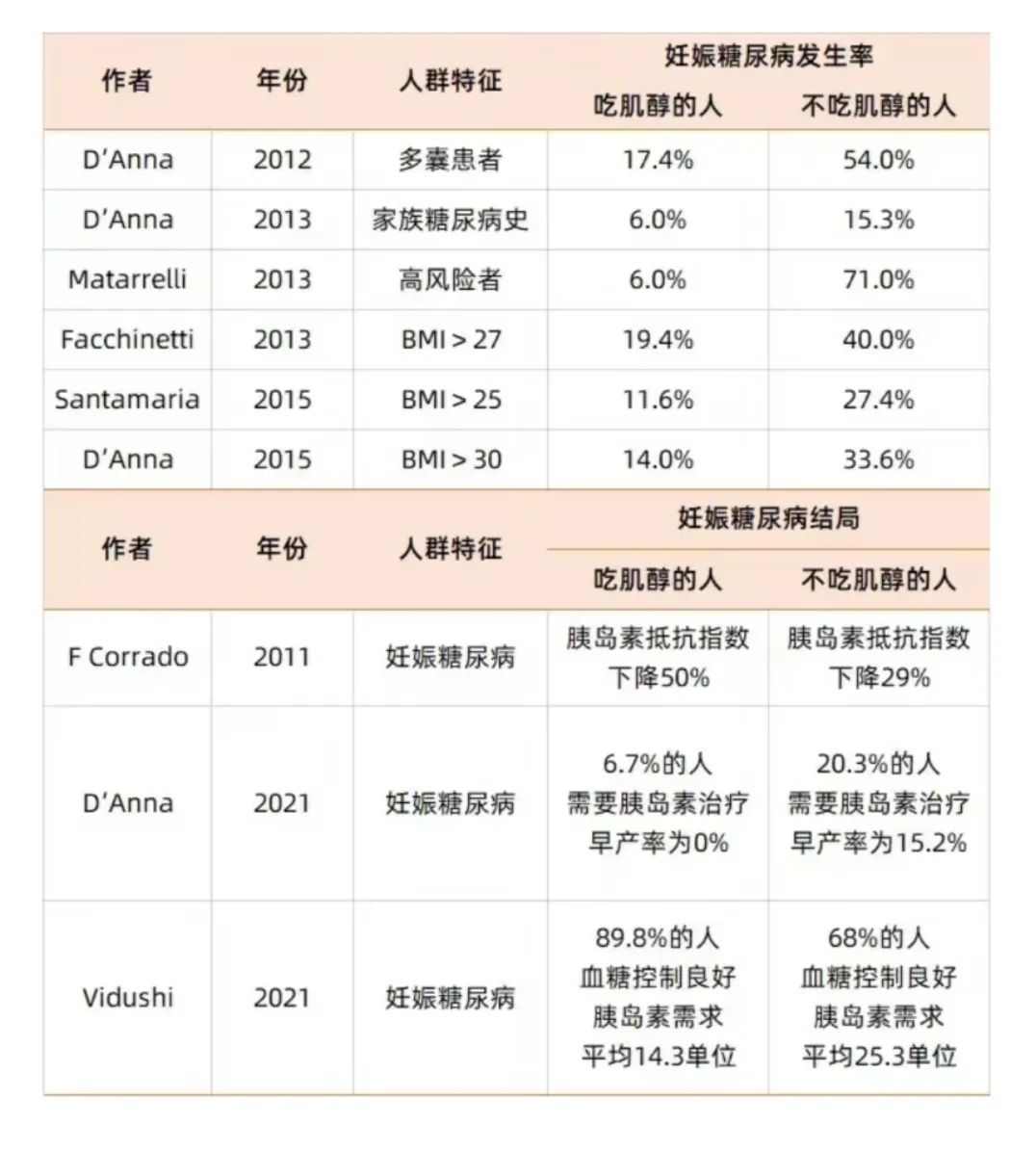以下是摘录的部分随机对照试验的结果,从目前的数据来看,肌醇可以有效地预防并辅助治疗妊娠糖尿病(更大型的多中心随机对照试验正在如火如荼进行中)