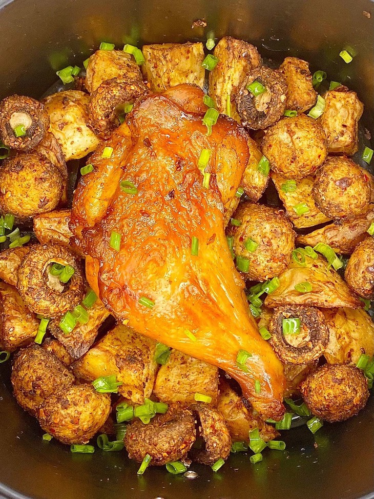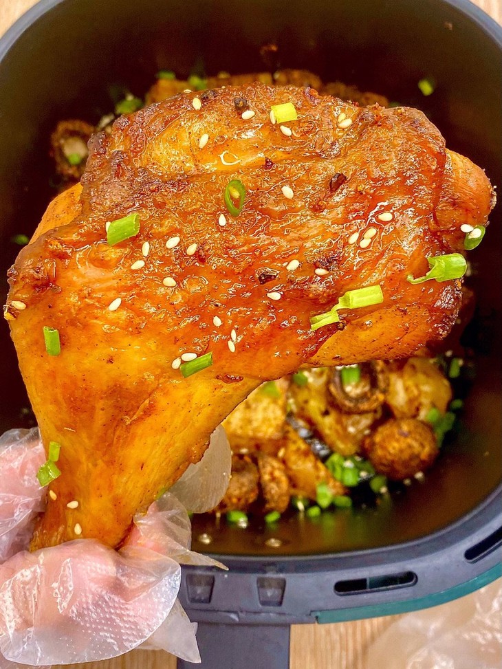 做起来超简单,不到半小时搞定,喜欢焦焦的手枪腿建议中途翻个面,再多炸几分钟~