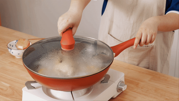 锅盖提手下添加了感温硅胶圈,油温达到140℃以上会自动变成粉色,提醒该减火了,让我们更方便直观的掌控火候,简直太贴心啦~
