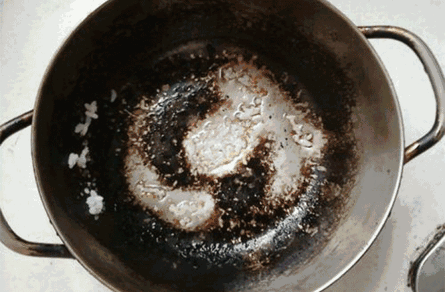 粘在锅底的东西,又油又腻,锅被刷秃噜皮了也刷不掉,2个月的新锅变成月球表面。