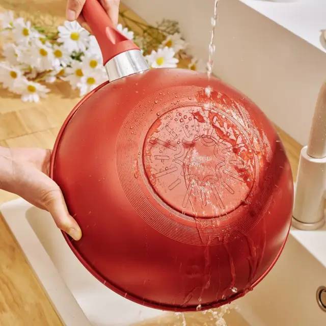 使劲刷也不带心疼的(不能用钢丝球哟),可以说这是一口将铁锅和涂层锅优点集一身的炒锅!
