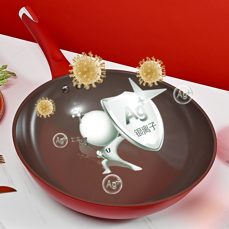 锅的内层自带银离子抗菌,对引发各种肠胃问题和疾病的大肠杆菌、金黄色葡萄球菌等常见细菌,抗菌率达到了99.9%。