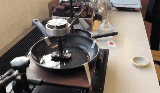 比如锅子用磨砂纸抹1500次后,再用来烧牛奶,烧到牛奶起壳,再用冷水直接冲洗。