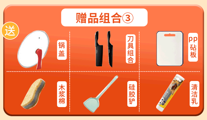 而这口幸运红炒锅,经过向品牌方的再三争取,给大家带来了一个双11跳楼价:直降140元,到手249元,买1发7! 赠品组合①