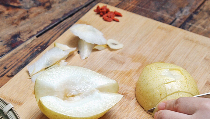 陈皮10克(5-10年),1朵银耳(30-50克,微黄),雪梨1斤;