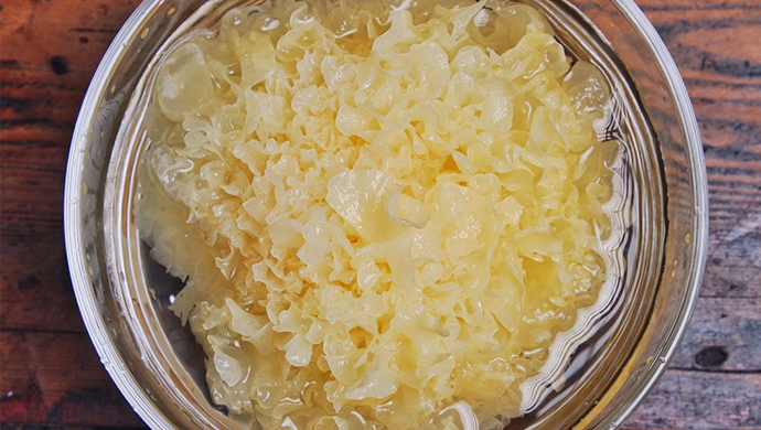 1、银耳清洗干净,泡发好后去掉黄色部分,然后撕成小块;