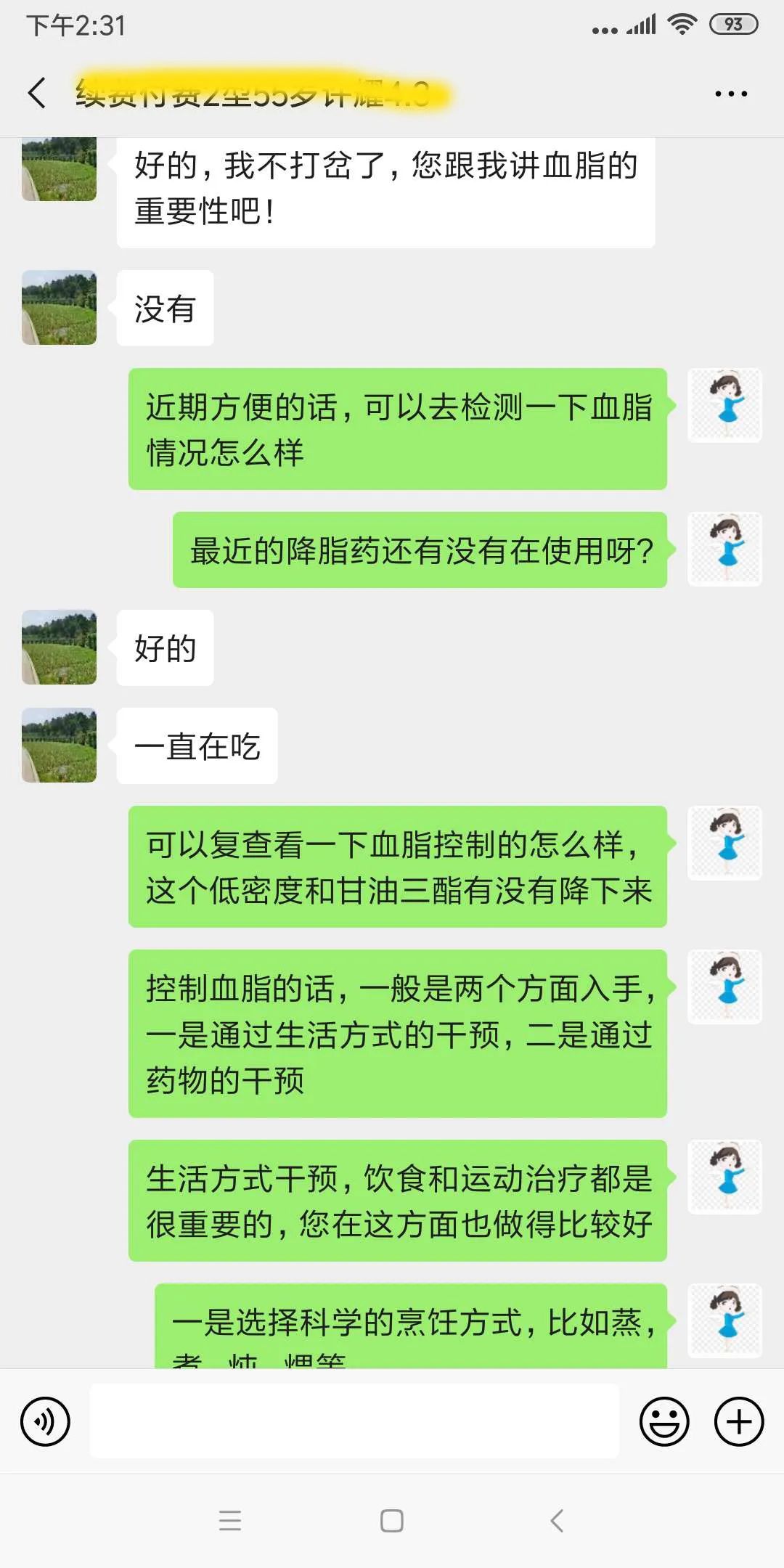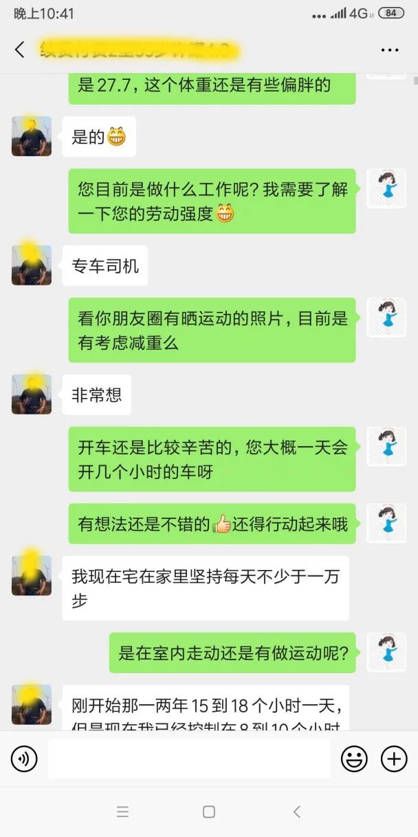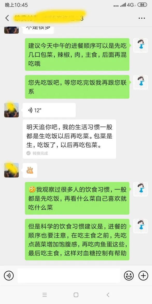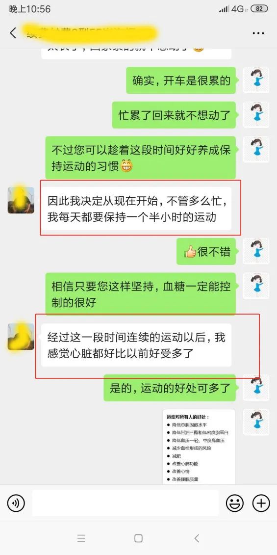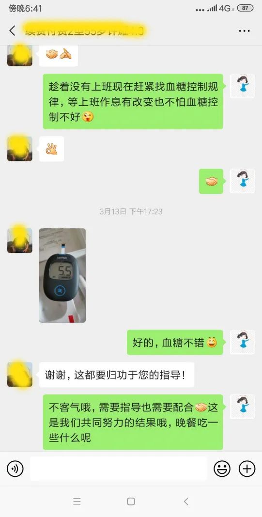 我自己在网上买了个三诺血糖仪,开始的时候血糖波动非常大,经常餐二血糖12点多。那个时候就纳闷,我都按时吃药了,怎么个血糖还是经常忽高忽低的。当时加了三诺这边的微信,看到朋友圈有花钱购买控糖服务,可以提供在线控糖的指导。我当时想,要是血糖失控发生并发症住院至少得花个大几千,自己还受罪,也会拖累妻子儿女。现在只要花很少的钱,就可以有专业人员指导反正也花不了几个钱,就抱着试试看的态度参与了控糖服务。