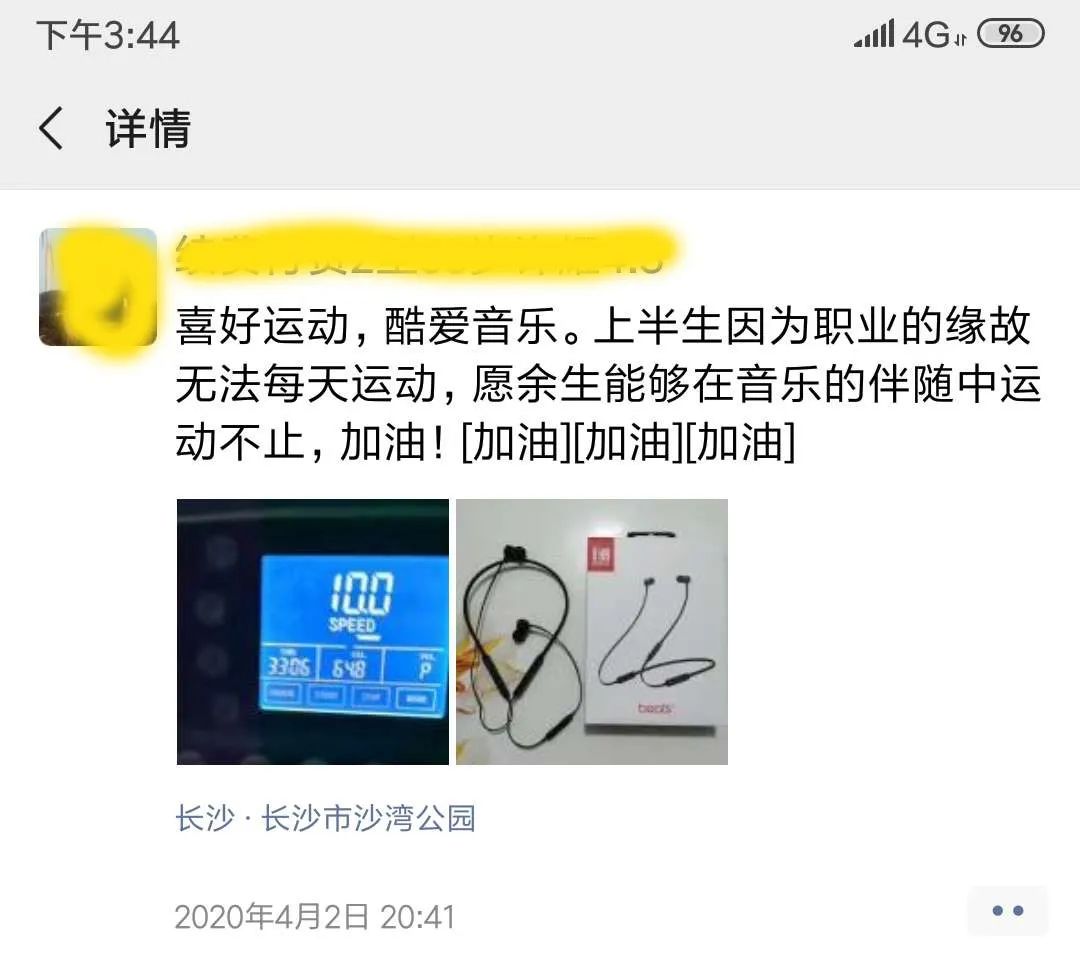 其次是以前因为工作的原因很少运动,现在开始在健康顾问的指导下开始运动,买了个跑步机放在家里前前后后还购买了一些小的健身器材,天气好的时候在小区内部道路跑4个圈36分钟左右,天气不好就在家里运动。从最开始的不适应慢慢喜欢上边运动边听音乐,整个人的精神状态好了很多。