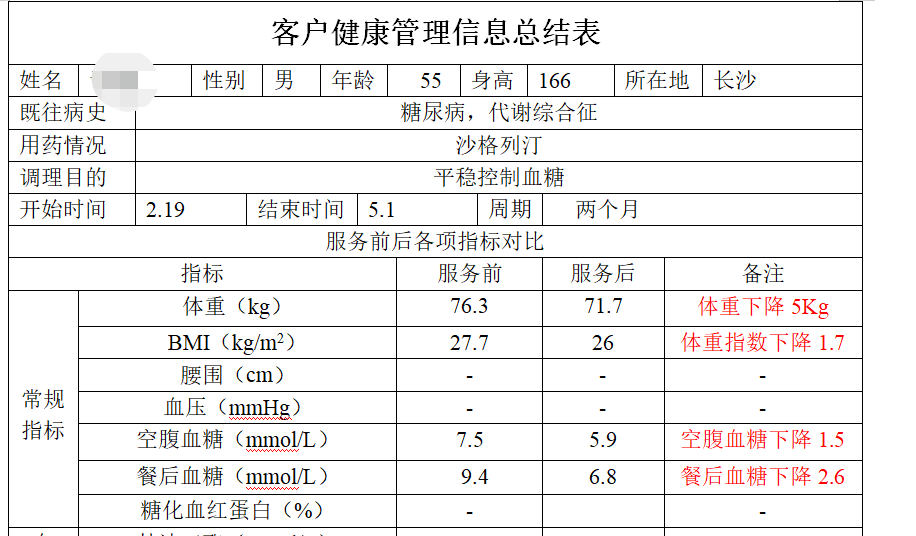 我在参加三诺健康提供的控糖服务后,血糖得到明显的改善,尤其是体重下降了10斤。
