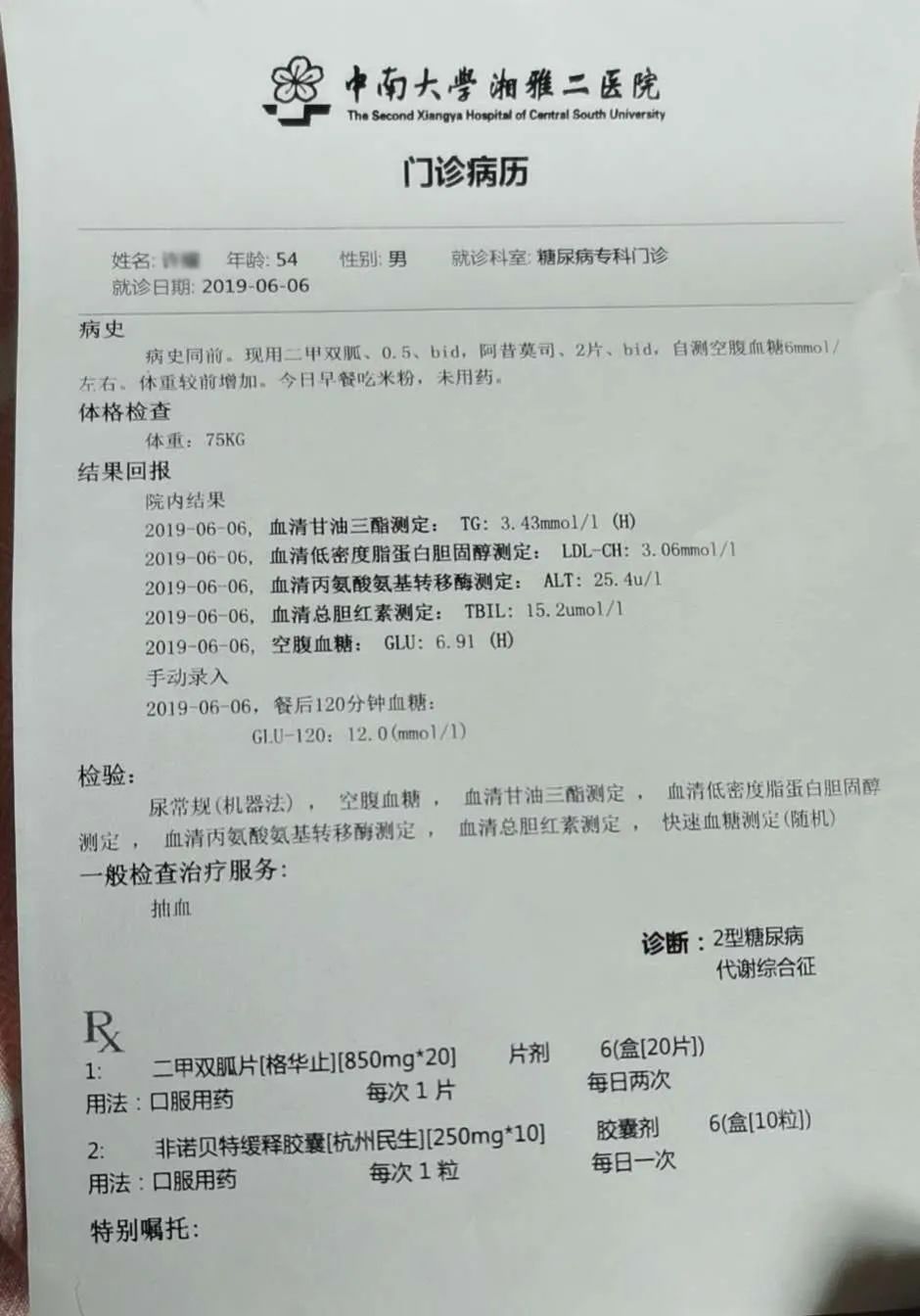 我当时是在湘雅二医院检查确诊的,长沙比较好的大医院了。中国糖尿病人非常多,医生超级忙,只是告诉了我确诊结果,然后开了个二甲双胍和非诺贝特缓释胶囊,完全没有沟通。除了吃药控制血糖,其他方面完全不懂,当时也没个人沟通。