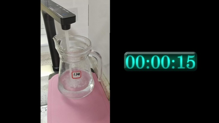 实际测试一下,接取1.2升水用时27秒。(我贴纸底部是1.1升,实际上接的水超了,大约在1.2升)