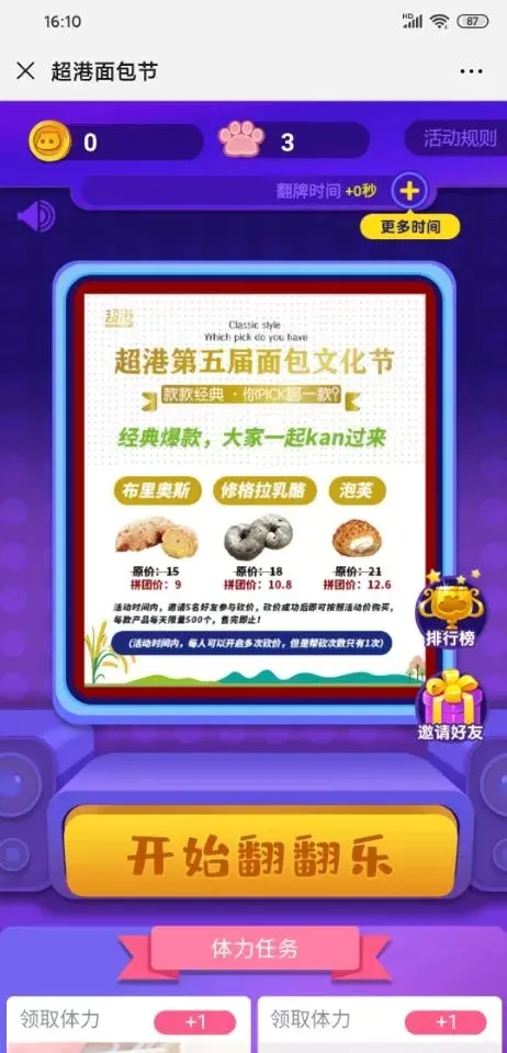 默认体力3次,用户可通过查看体力任务来获得更多体力