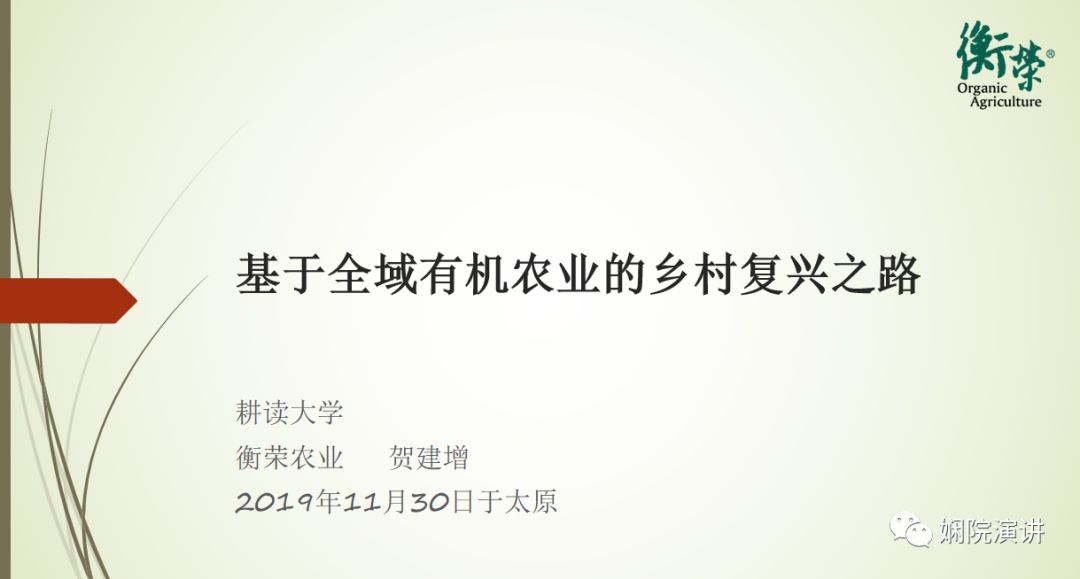 大家好,今天我在这里把我个人成长的这条路,并且如何探索出基于全域有机农业的乡村复兴之路的历程给大家做一个分享,就是今天这题目,可以说是这四十多年的历程,伴随了我这么一个过程。
