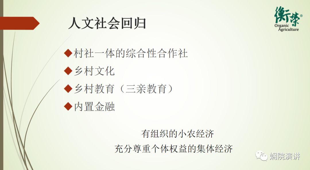 再看人文社会回归,要做好我们前面的全域有机生产和生态乡村建设,很重要的一个最难的一点也是,是人心。