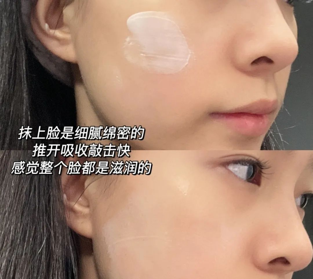 面霜是天鹅绒般哑光质地,能一抹哑光成膜,触感细腻,上脸很好抹开吸收,长久保湿不泛油光。