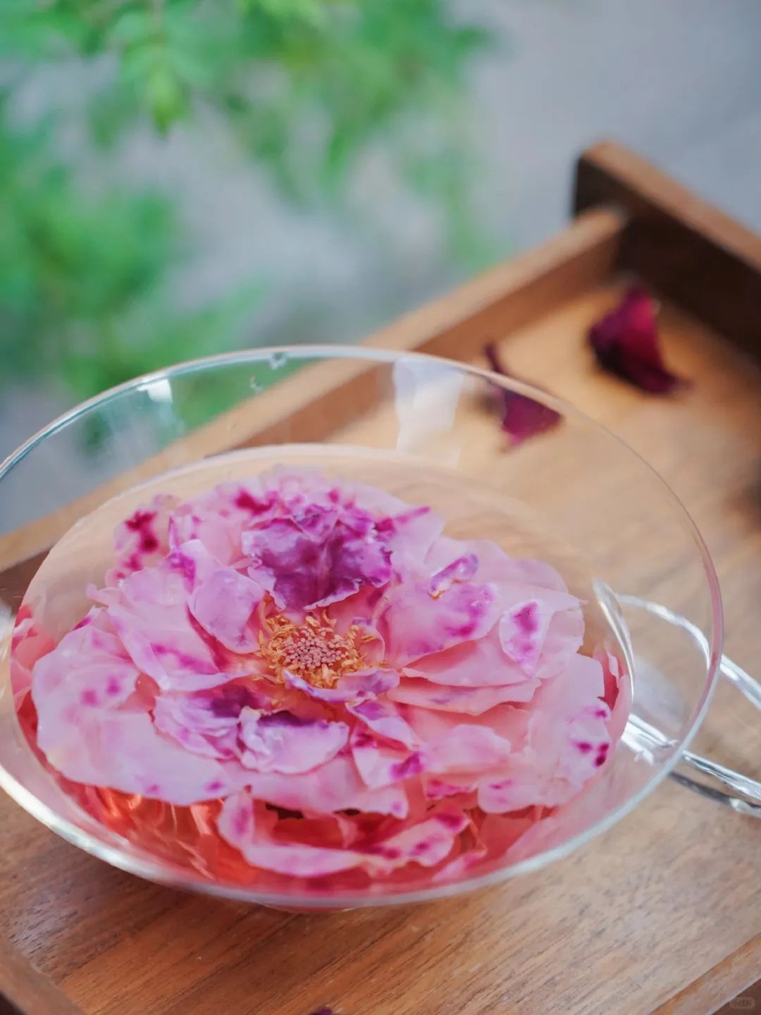 经过沸水冲泡,看着层层花瓣晕开,一朵“枯花”在水中绽放,重焕生机,美轮美奂!