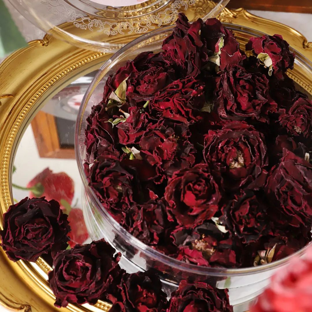 珍贵的花色苷、精油、花青素能保留95%以上,还原墨红玫瑰醇正的馨香,几乎和鲜花无异,存放时间还能更久。