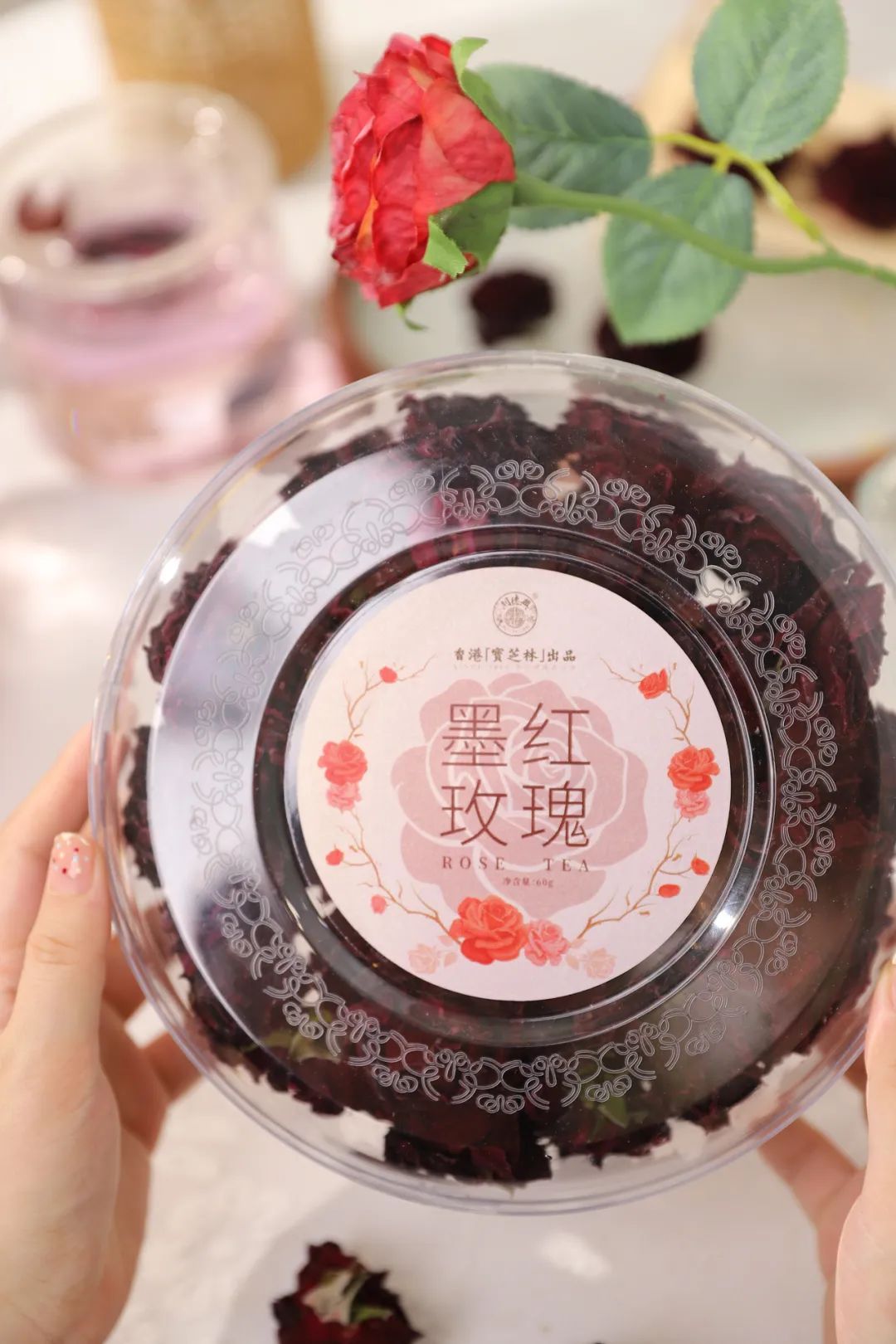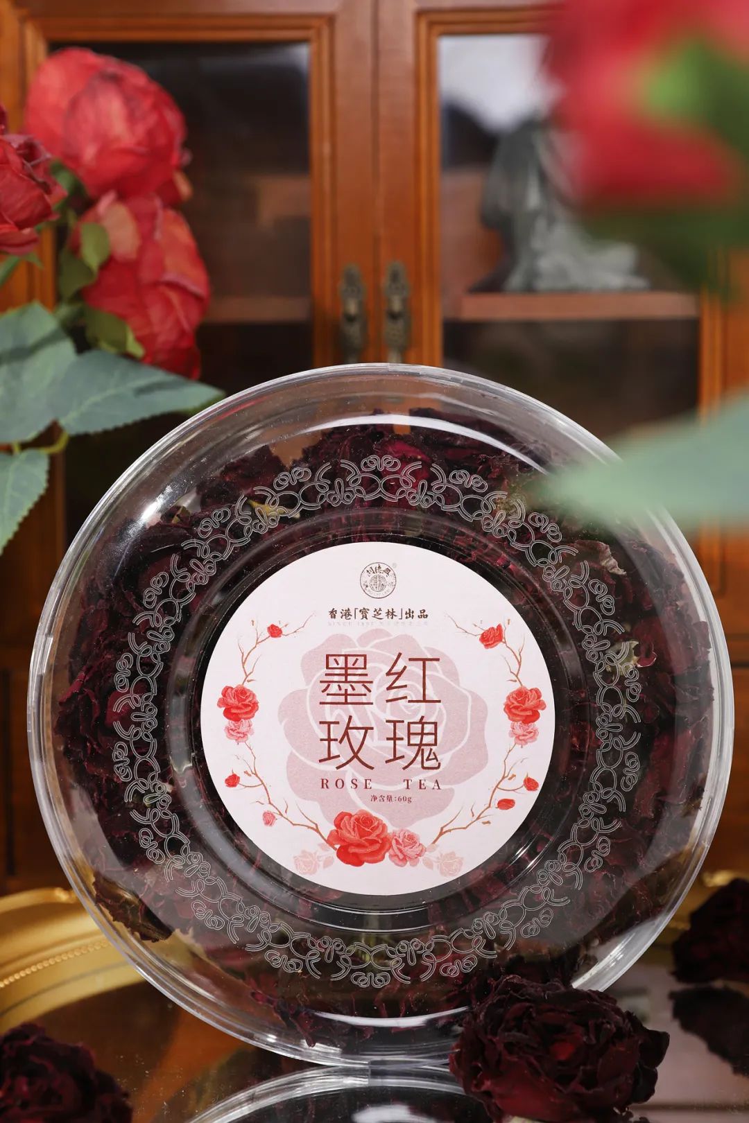 宝芝林在云南承包了1000多亩的墨红玫瑰花基地,源头直采,每一朵都“红的发紫,紫黑如墨”,品质那是没话说。