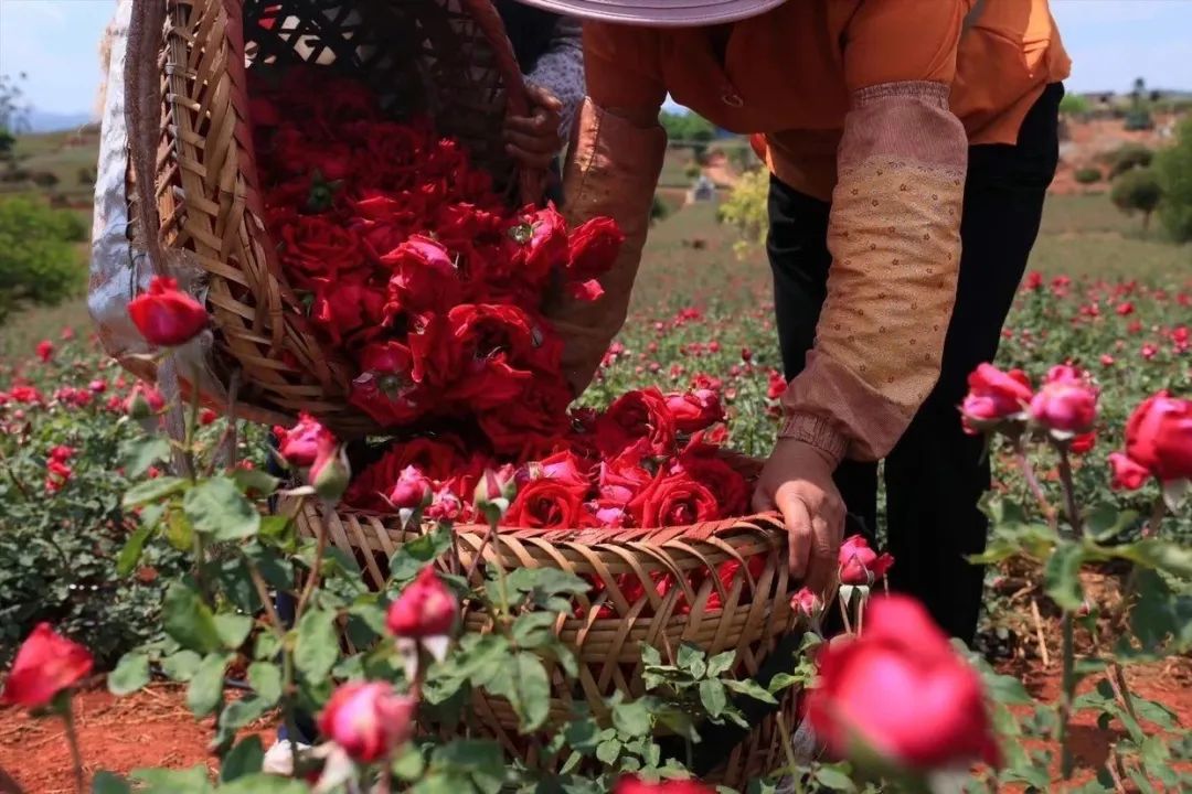宝芝林与云南当地的农户合作,承包了1000多亩的玫瑰种植基地,实现源头直采。