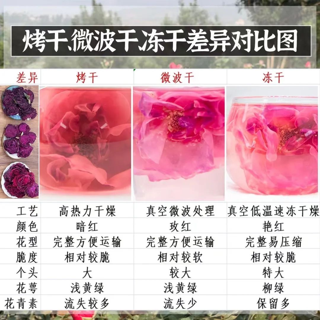 目前市面上处理玫瑰的方法无外乎烘干和冻干。