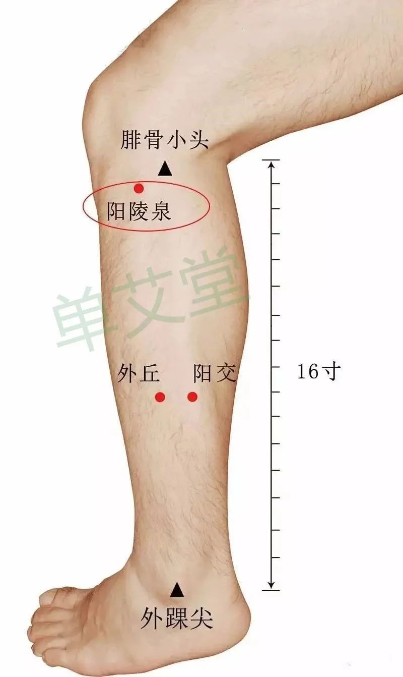 阳陵泉还有一个更重要的功能,那就是调和肝脾。因为:阳陵泉为胆经合穴,胆经属木,气通于肝,合穴属土,血贯于脾,此穴正是调节肝脾功能之枢纽。对于妇女月经不顺、内分泌失调、甚至更年期综合征,艾灸刺激阳陵泉,可以收到很好的效果。