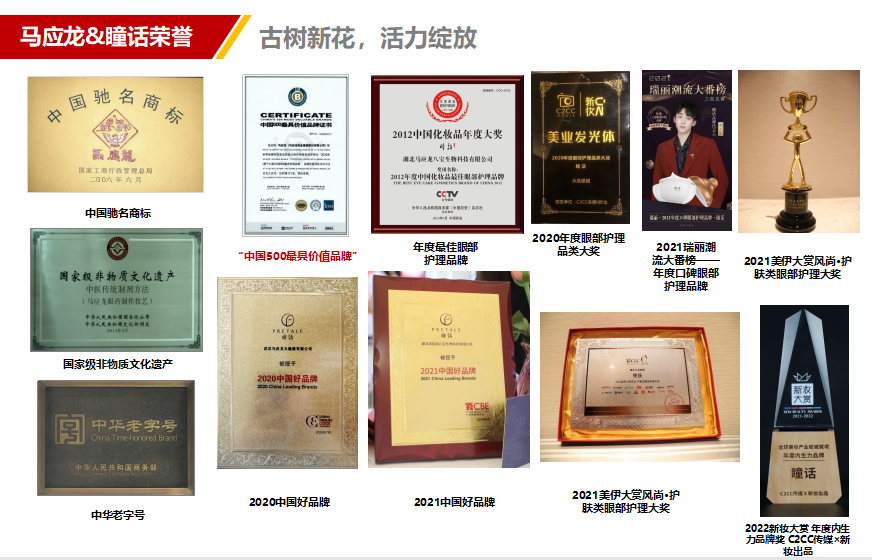 1582年开始就泡在眼药这一行,440年的历史,底蕴比很多国际品牌都深厚。万历年间也流传着这么一句民谣:头顶马聚源,眼看马应龙。“瞳话“是马应龙的子品牌,旗下的眼部产品,都是联合北京大学药学院、中国药科大学、湖北中医药大学、中山大学附属第三医院...自家底子厚,还有高新技术支持,很难干不好眼霜这档事儿。瞅瞅马应龙拿下的133项专利证书、36个发明专利、19个实用新型专利就知道了,实力硬得很!咱们之前推荐过它家的眼膜、眼霜,回回爆场,80%都是回头客。马应龙是咱家的老朋友了,这次不论哪款眼霜,同样给出了诚意满满的友情价。
