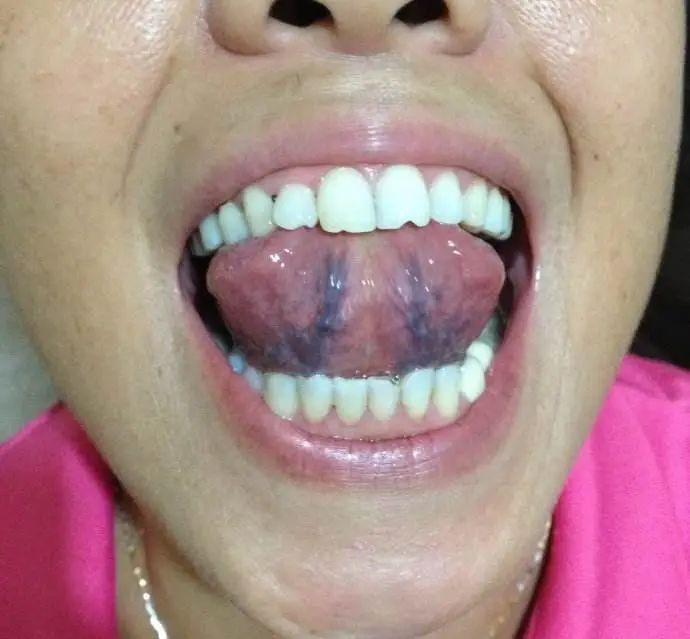 眼睛、耳朵、鼻子、嗓子、下颌淋巴结出现问题时,耳垂下方与脸连接的区域会肿大鼓包。通过看舌底脉络的粗细、颜色、瘀曲程度可以判断身体瘀滞的严重程度。一般来说血管越黑、越瘀曲,就瘀滞得相对越严重。