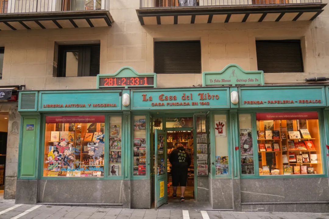 商店上的数字倒计时是距离下此次奔牛节的时间;木质围栏是节日时保护看客不越界、以防被牛伤到