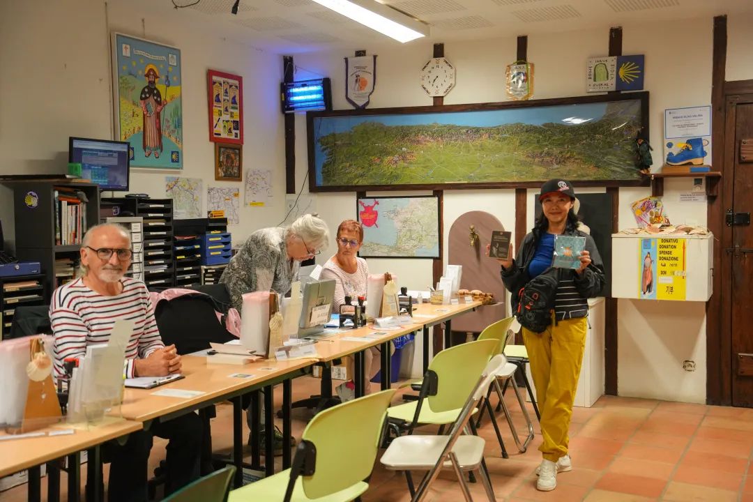 抵达时已接近傍晚,小镇也不似城市喧哗热闹。办理好入住可以到Les Amis Du Chemin De Saint Jacques 朝圣者公共室看看,让白发苍苍的志愿者为我们的朝圣者护照盖上第一枚印章,说上第一句"Buen Camino"。